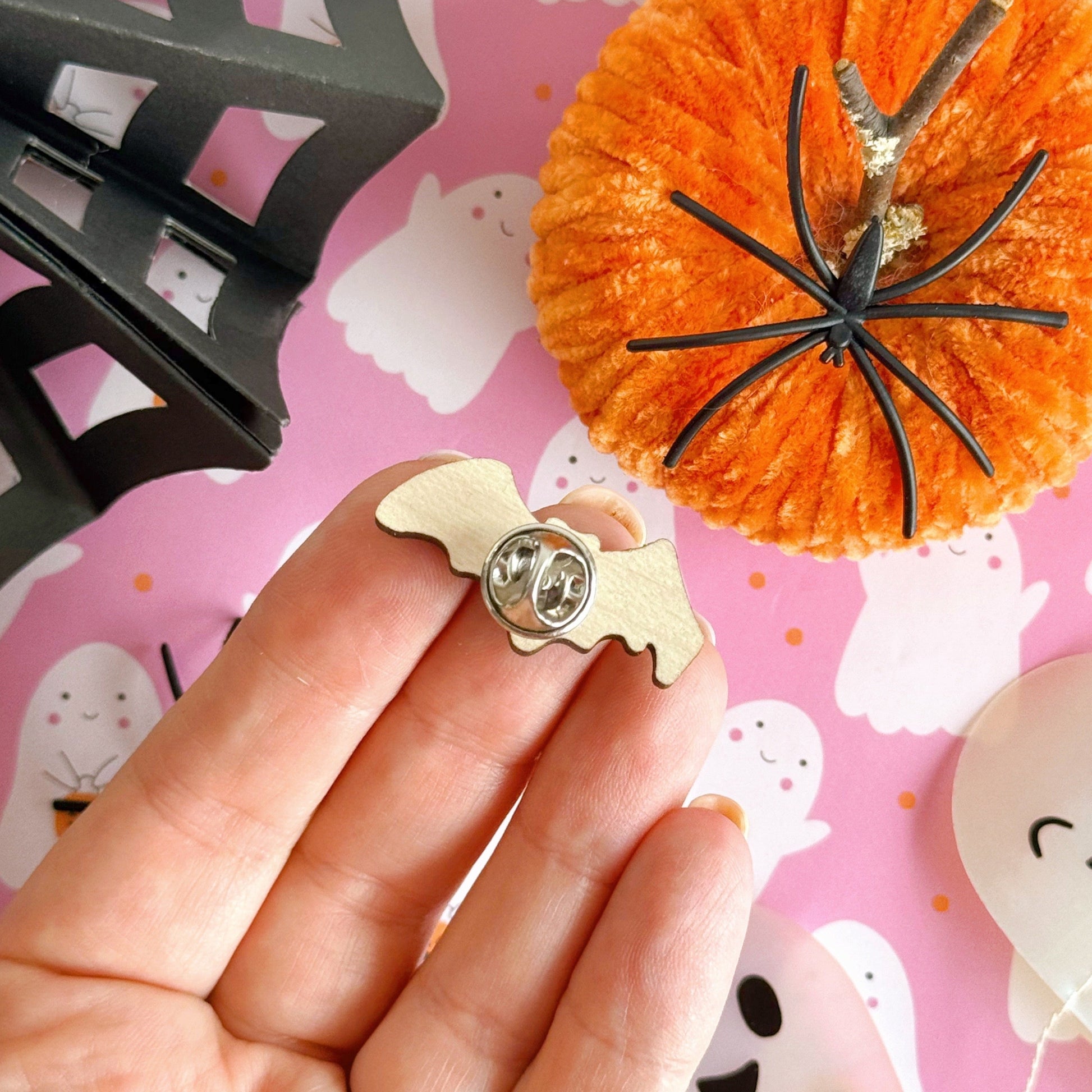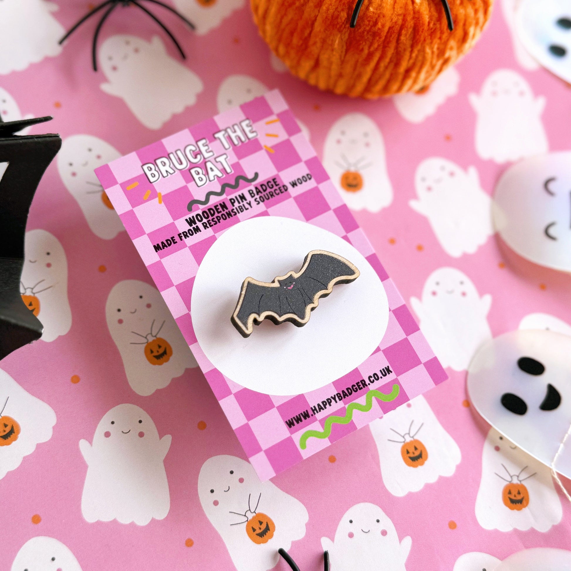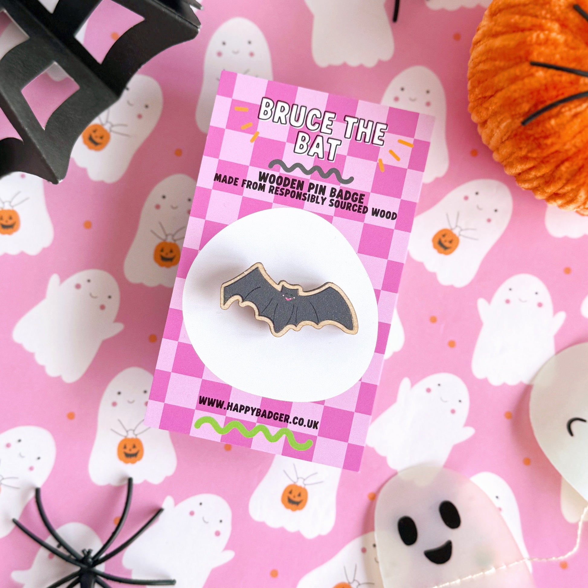Bruce The Bat - Wooden Eco-Friendly Halloween Pin Badge