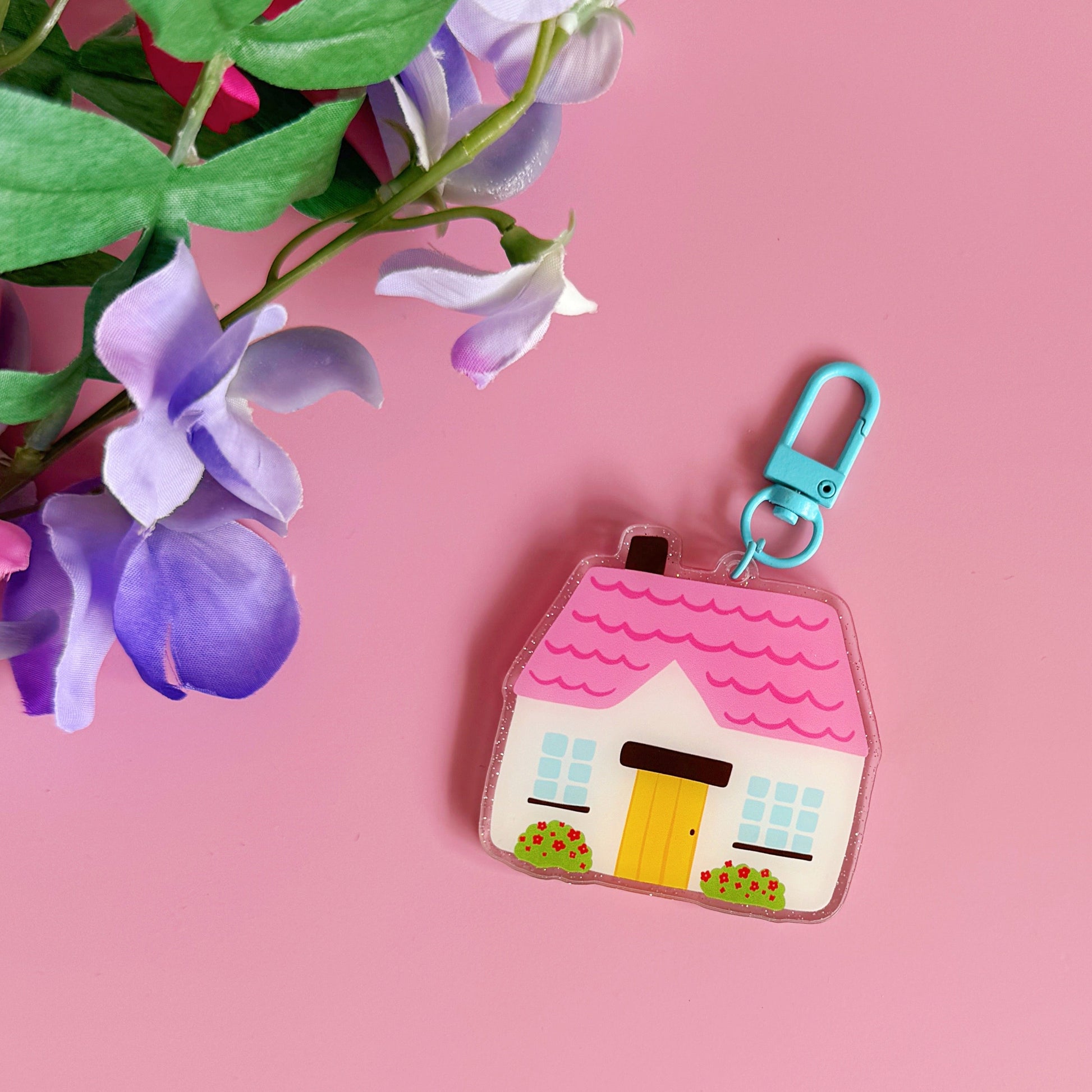 Made from high-quality acrylic and printed double-sided (with one glitter side for extra ✨ dazzle ✨), this sweet cottage charm comes with a colour-coordinated blue key chain and measures approx. 5.5 x 7cm (excluding the clasp). It's ideal for keys, bags, or adding charm to your everyday accessories.
