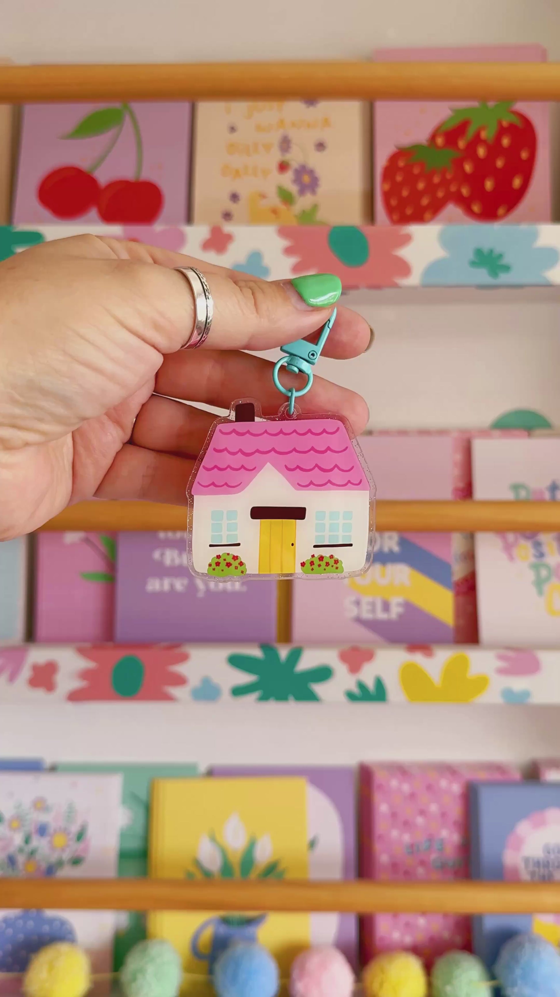 Add a sprinkle of sparkle to your keys with this cosy little cottage keyring 🏡💖. Featuring a cute pink-roofed house with a sunny yellow door and a magical glittery finish on one side, this keyring is the perfect way to carry a bit of whimsy with you wherever you go.