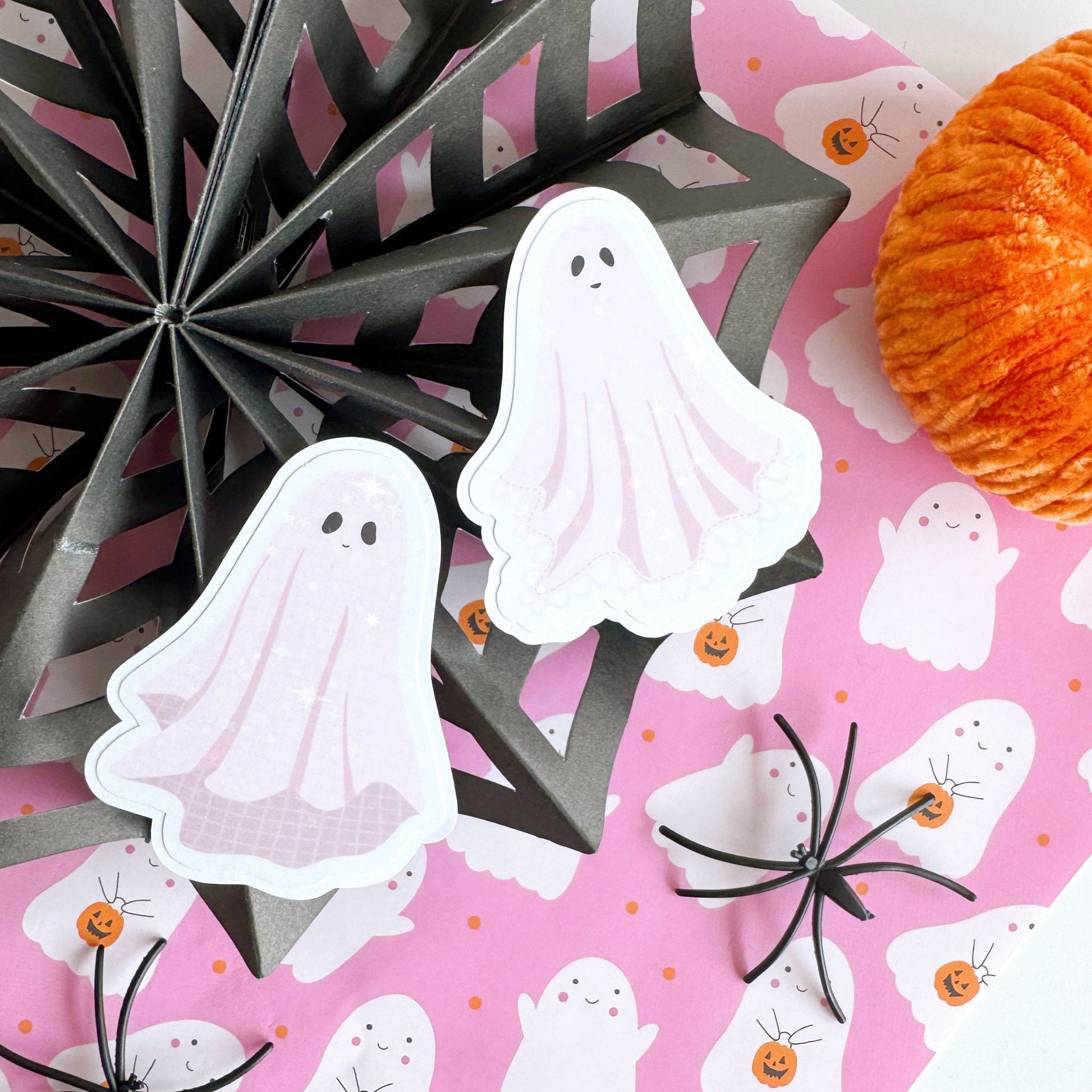 Printed on premium sticker paper and finished with a holographic sparkle coating, these ghosts shimmer beautifully in the light - the perfect mix of spooky and sweet!