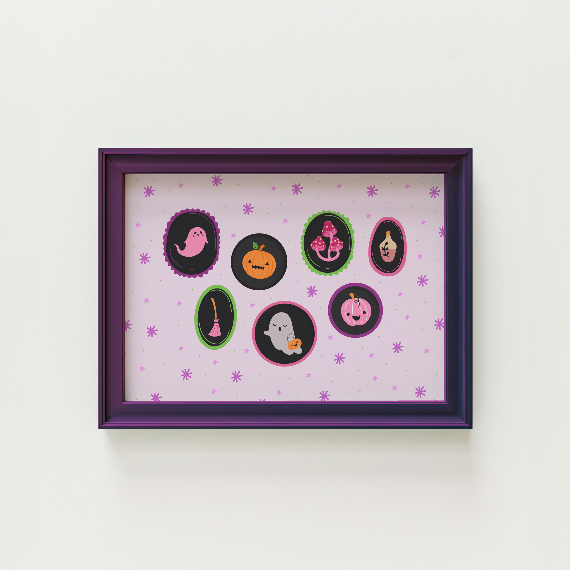 🎃 Features 7 unique framed illustrations with pastel Halloween vibes