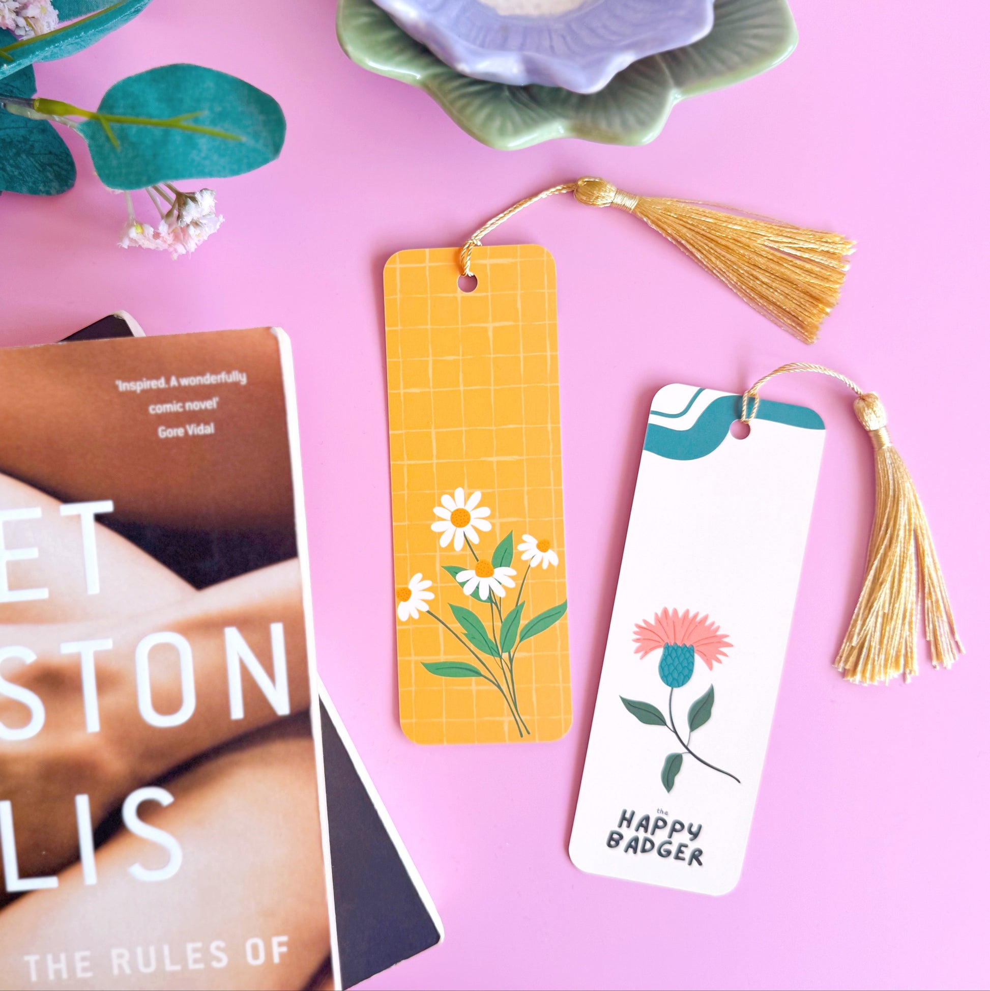 Daisy & Thistle Bookmark - Yellow Illustrated Bookmark with Co-Ordinating Tassel