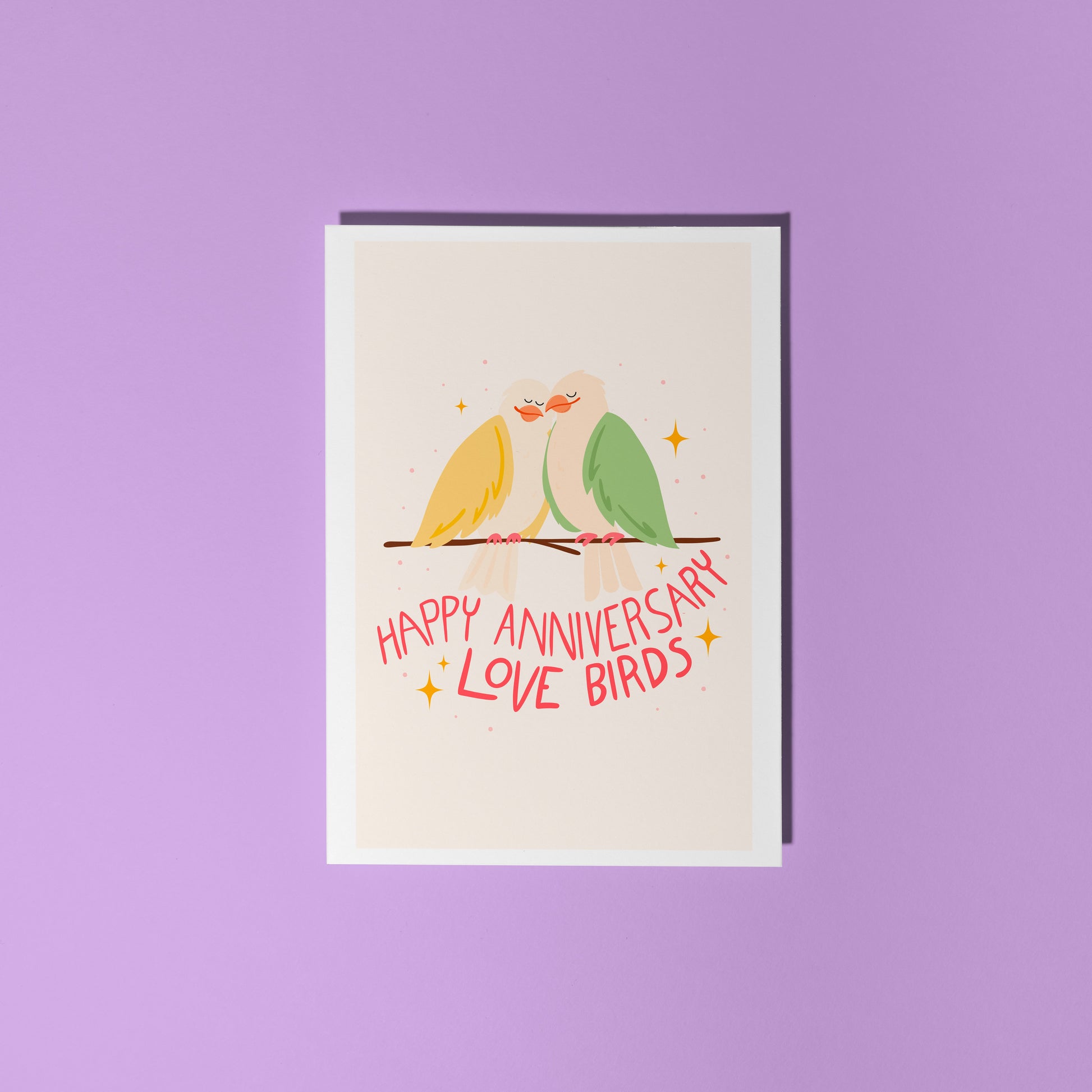 Happy Anniversary Love Birds Card - A6 Greetings Card