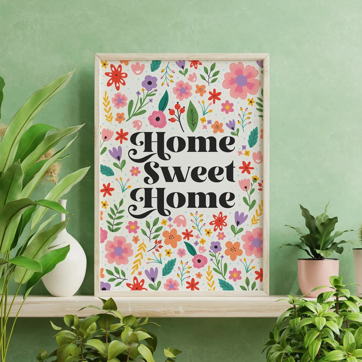 Celebrate cosy vibes and cheerful colour with our bestselling Home Sweet Home wall art print. Set against a hand-drawn floral background filled with vibrant, joyful blooms, this print brings instant warmth to any room. In the centre, the classic quote “home sweet home” is written in bold black text - a timeless reminder that there’s no place like it. Whether you’re gifting it for a housewarming or adding charm to your own space, it’s a floral favourite for good reason!