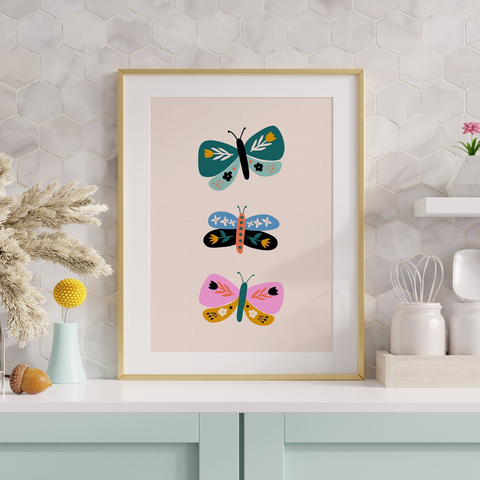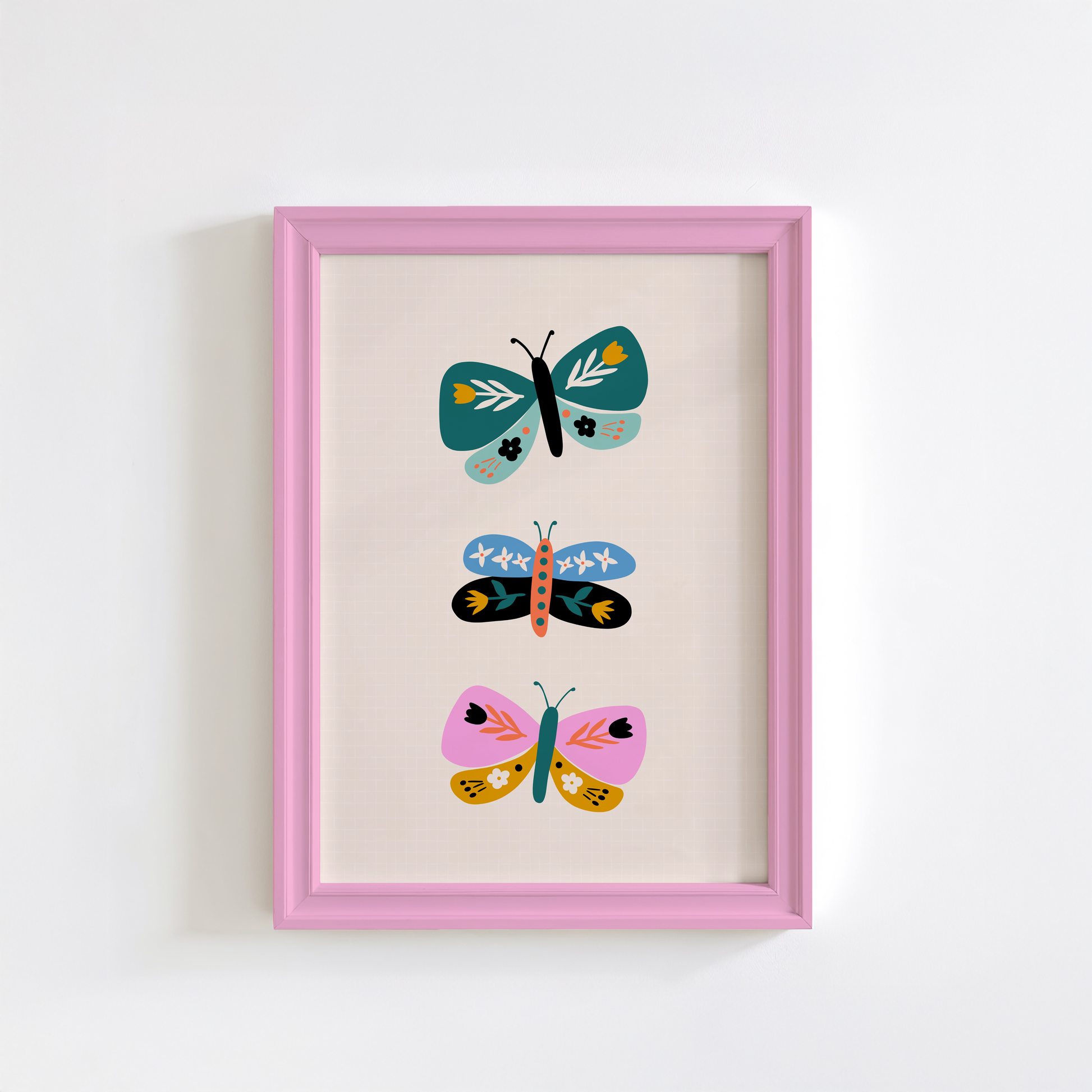 Brighten your walls with our Retro Butterflies Print! Enjoy this vibrant illustration of three cheerful butterflies, bursting with colour and ready to flutter into your home. Add a charming accent to your decor and spread some butterfly magic! 🦋