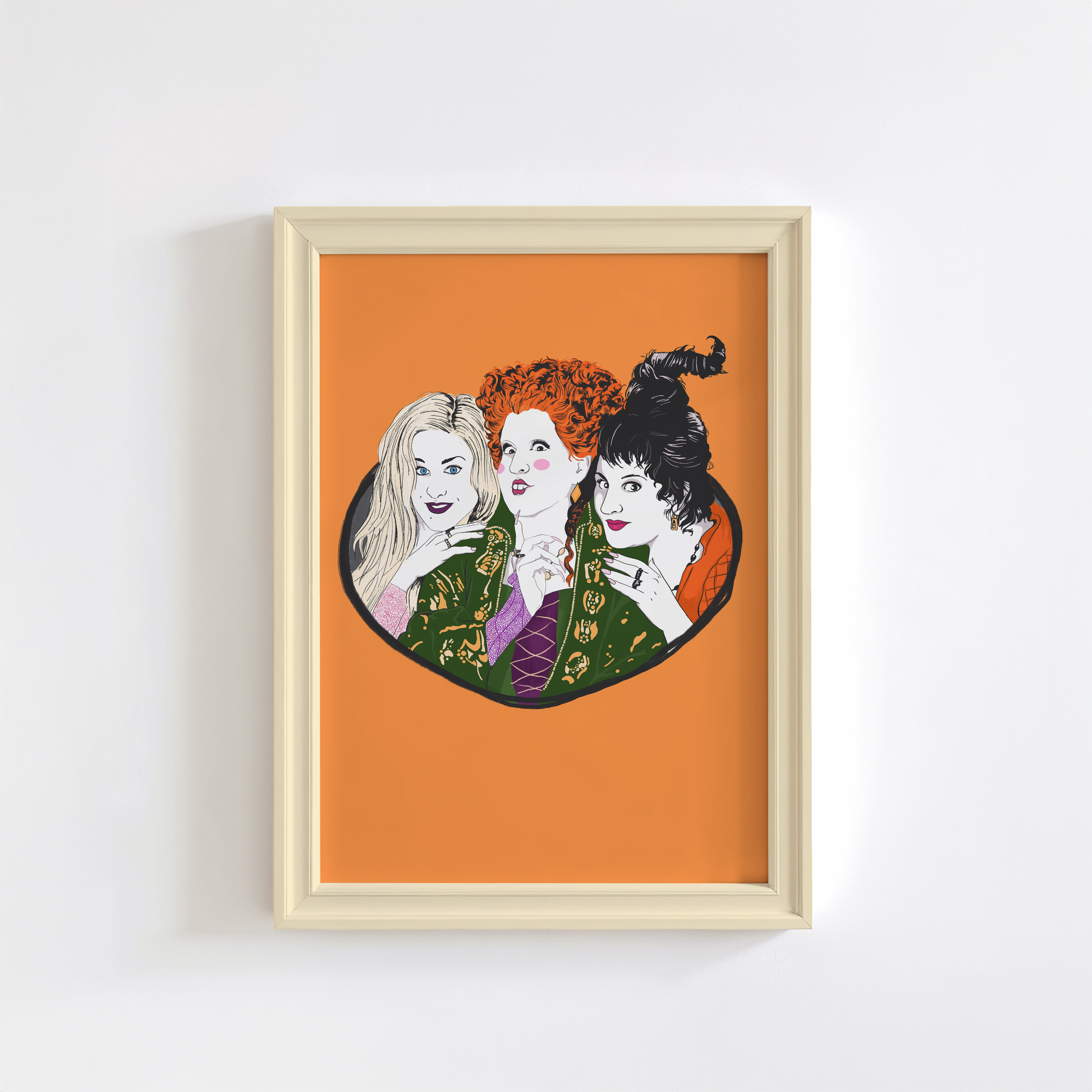 Add a magical splash of colour to your walls with this spooky-cute illustrated art print! Featuring the iconic Sanderson sisters from Hocus Pocus, set against a seasonal orange background, this piece is the perfect way to celebrate your love of Halloween all year round. Fun, playful, and full of witchy charm - it’s designed to stand out in any colourful living space.