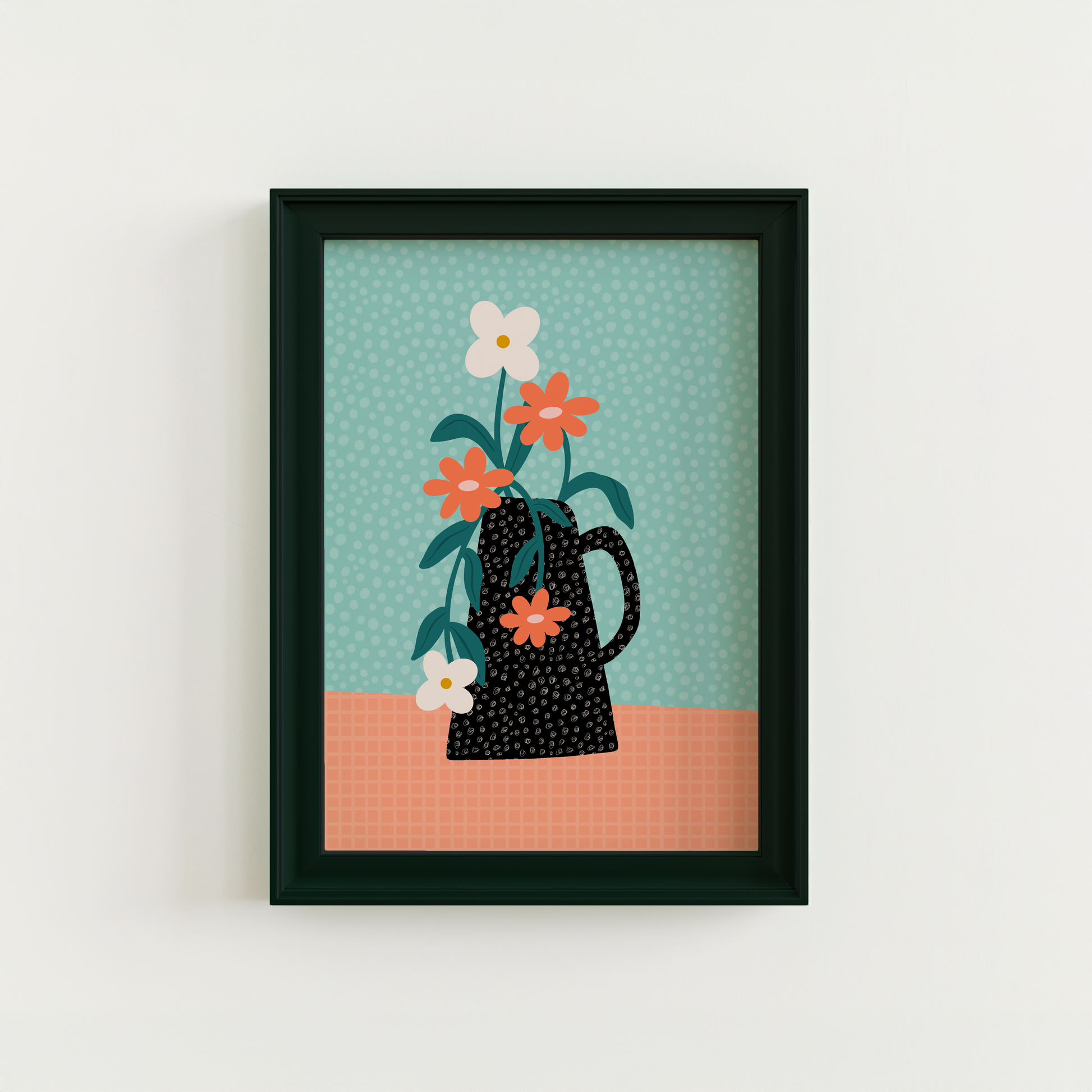 Bring some vibrancy to your living space with this eye-catching Vase Print. A blend of bright teals and oranges creates a cheerful pop of colour, with a detailed illustration of a vase full of flowers – it's sure to make your wall bloom with joy!